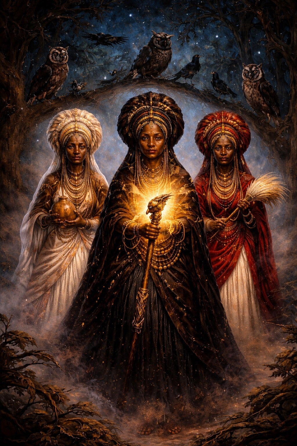 Among all the Orìṣàs, three stand closest to the operations of the Ìyààmì in the world: Òṣun, Yemọja, and Ọya. Each represents a different way Àjé becomes visible, usable, or unavoidable in human life.